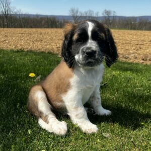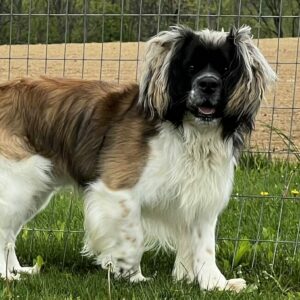 Have you dreamed of being friends with the heroic dogs of the Swiss Mountain passes? Maybe you’ve always wanted your own St. Bernard, but its size and slobber scared you away. Our mini St. Bernard mixes are smaller and drool less than a standard St. Bernard. Fun-loving and friendly, these smart dogs will make your family complete.